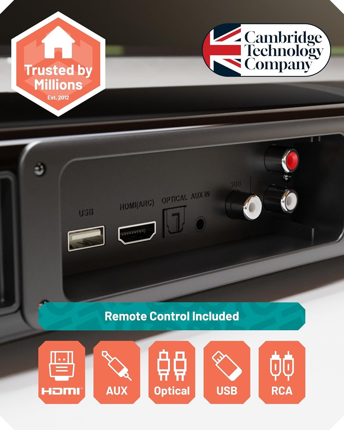 - 𝗕𝗟𝗨𝗘𝗧𝗢𝗢𝗧𝗛 𝟱.𝟯 𝗦𝗢𝗨𝗡𝗗𝗕𝗔𝗥 – Stream wirelessly from your TV, smartphone or tablet with a stable connection up to 10m, ideal for films, music and gaming.