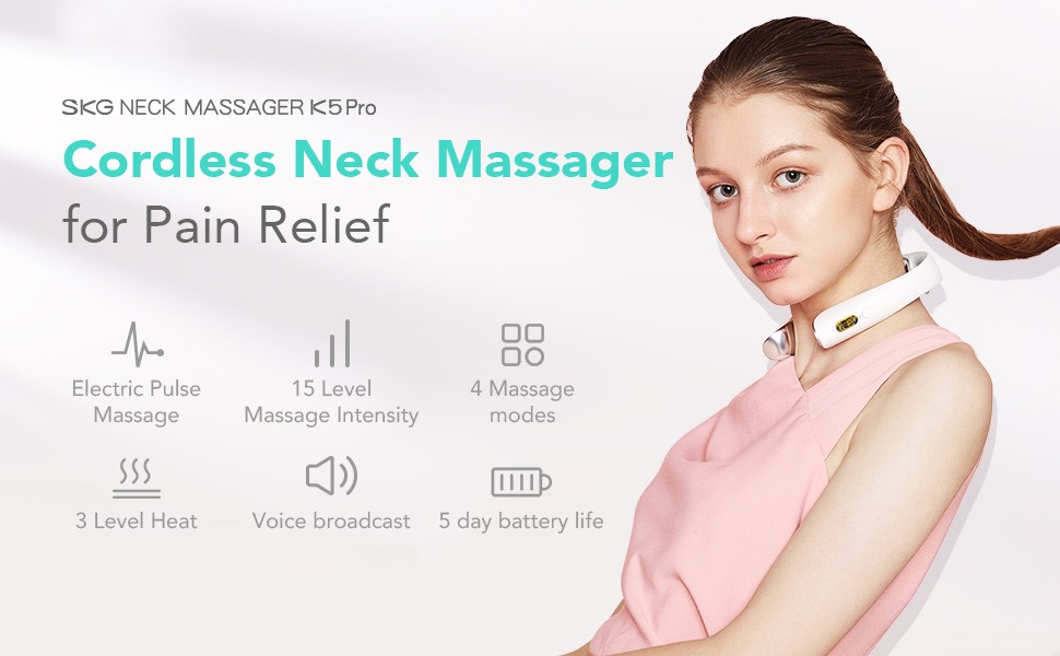 - Get Rid of Your Neck Pain: SKG K5 neck massager has 4 different modes - pressing, kneading, tapping and comprehensive mode, which can effectively relieve neck pain and muscle stress.Our neck massagers use the most recent technology to mimic the effectiveness of traditional massages and provide you with the quickest relief for neck pain.