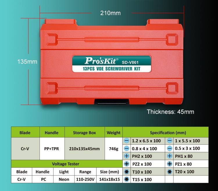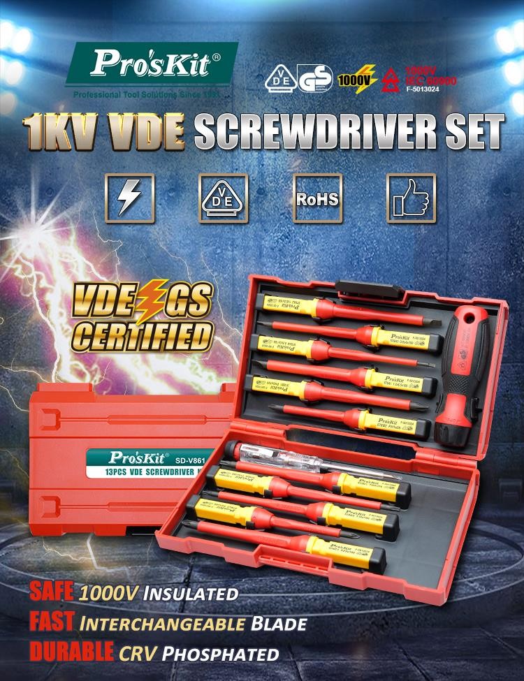 Proskit Screwdriver Insulated VDE Set of 13 pcs - SD-V861 - Proskit Screwdriver Insulated VDE Set of 13 pcs
