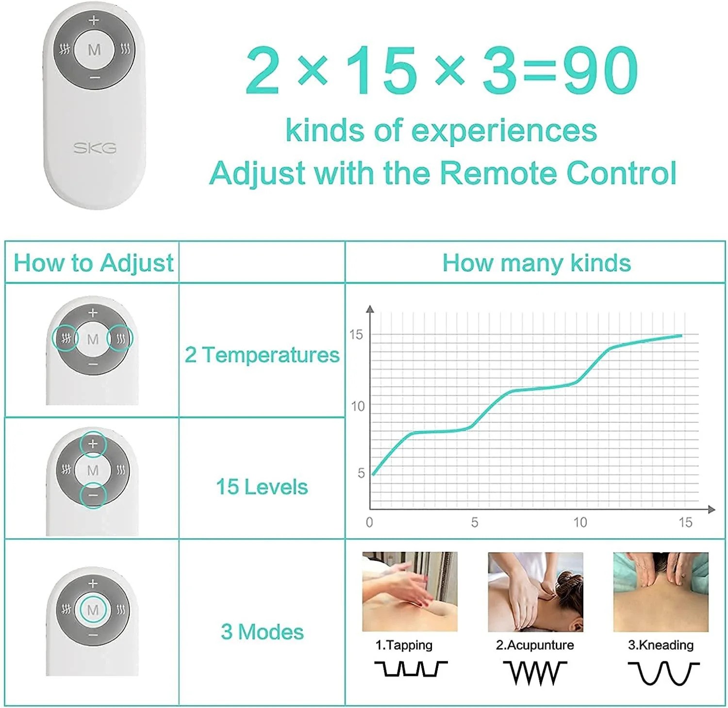 - 3 massage modes and 15 intensity levels: the massage device offers different massage modes and intensity levels. So you can enjoy an optimally adapted massage for you. The neck massager can be manually adjusted with the remote control, making operation very easy