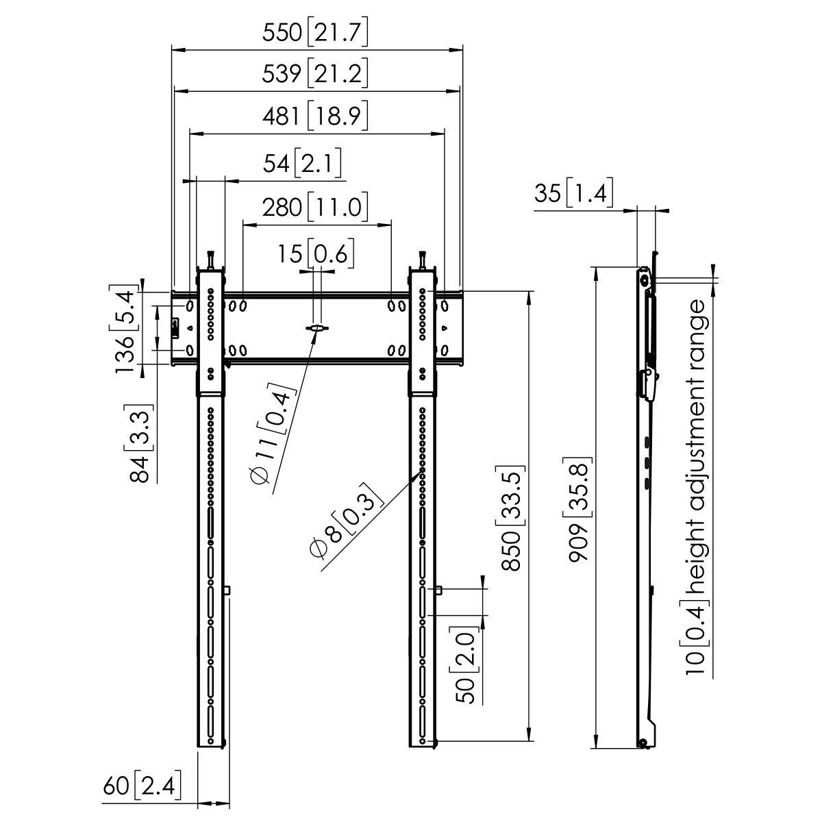 - Max. Hole pattern (VESA): 400 mm x 800 mm