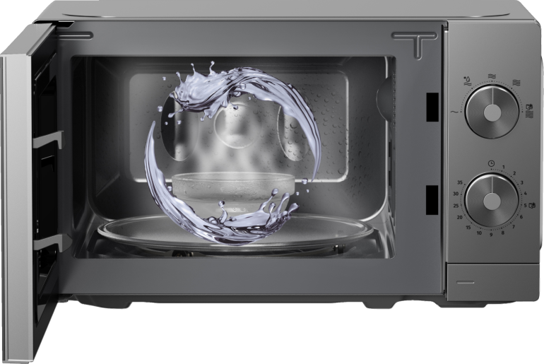 Gorenje microwave with AquaClean steam cleaning, 700W, 20L capacity, 5 programs, manual control, titanium finish.