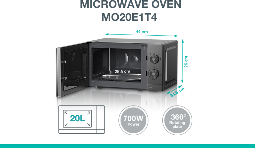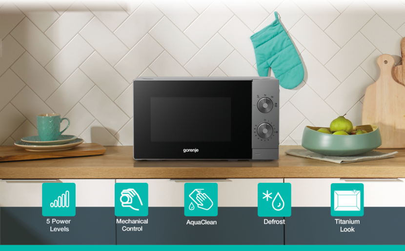 Gorenje Kitchen Microwave Oven - MO20E1T4 - 700W 20L 5 Programs Manual Knots Titanium