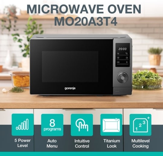Gorenje Kitchen Microwave Oven - MO20A3T4 - 700W 20L 8 Programs Digital Screen Titanium
