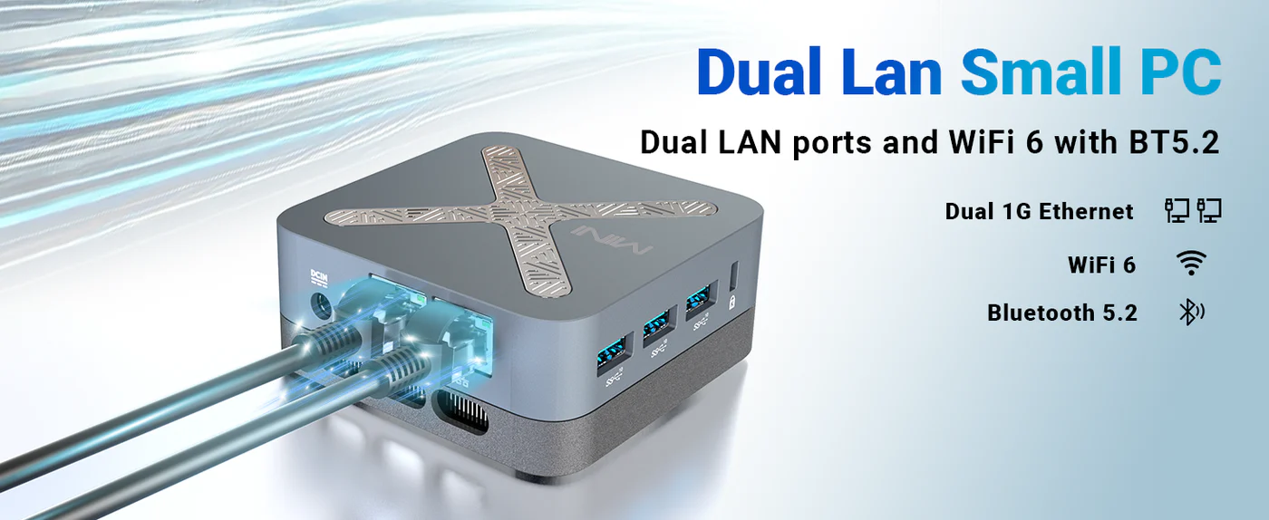 - 2.4G/5GHz Wi-Fi 6 + Bluetooth 5.2 + dual Gigabit Ethernet ports