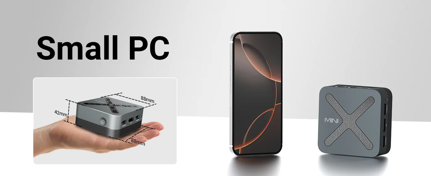 Intel N97 up to 3.6 GHz; HDMI 2x and DP 1.4 for triple-screen 4K@60Hz; 12GB LPDDR5X-4000MHz RAM + 512GB M.2 NVMe SSD; Windows 11 Pro; Dual LAN.