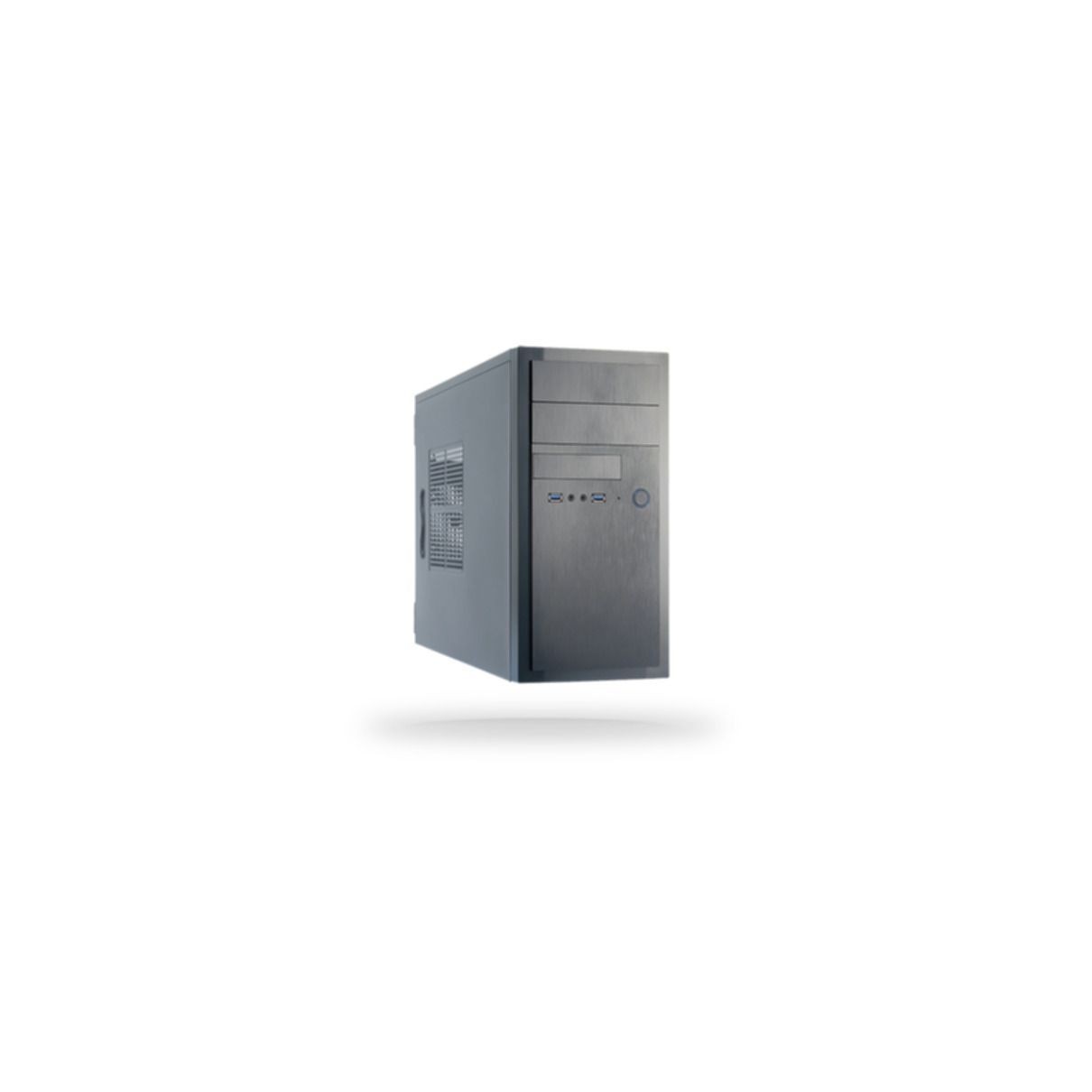 Mid-tower PC case (Chieftec HT-01B-350GPB) in black with included 350W PSU. Supports micro-ATX, max CPU cooler height 140 mm, max GPU length 340 mm, 2x USB-A front ports.