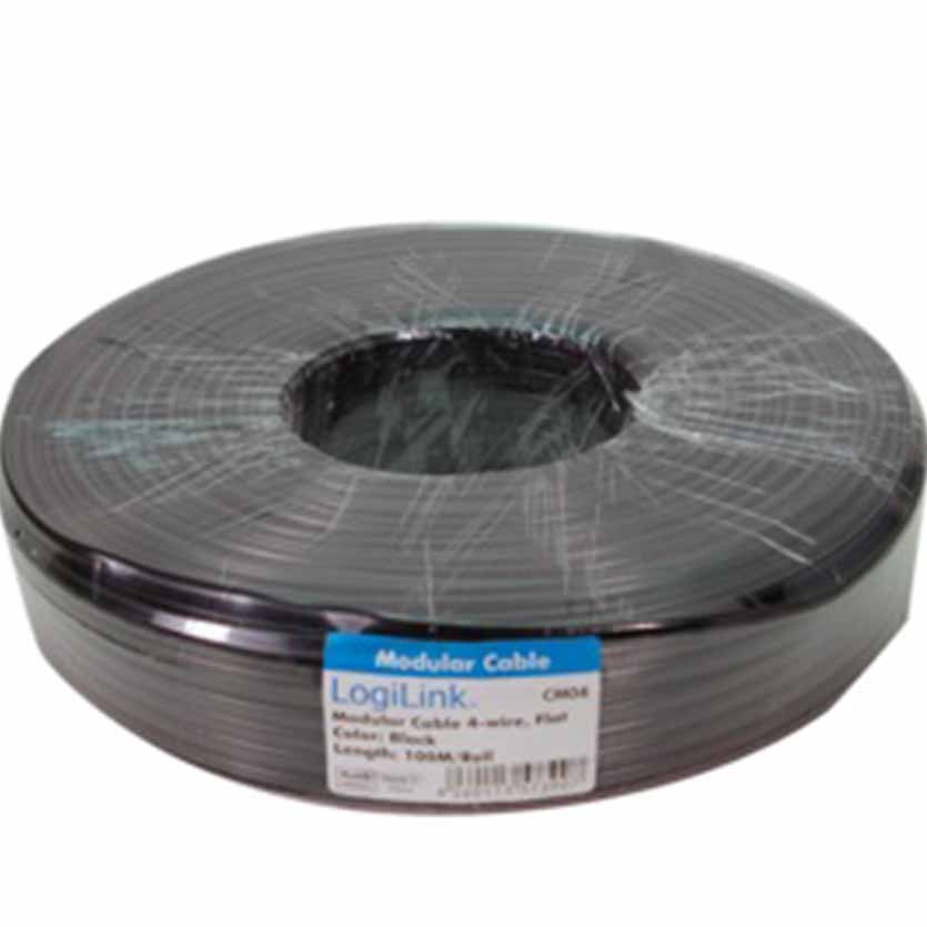 CM04 TELEPHONE CABLE FLAT 4-WIRES 100m BLACK, LOGILINK
