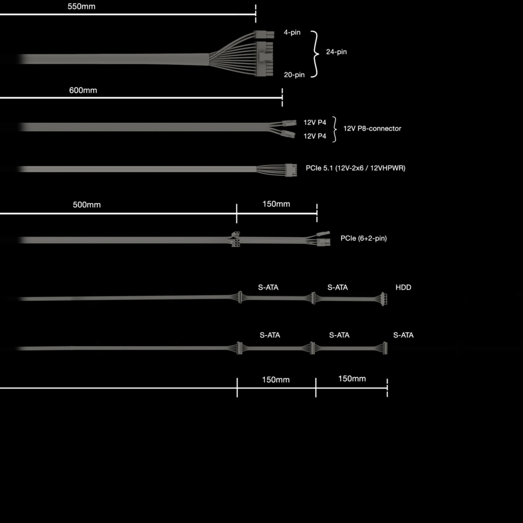 Pure Power 12 550W is ATX 3.1 compliant and PCIe 5.1 compatible and offers peerless dependability with best-in-class features. Having both a PCIe 5.1 cable and PCIe 6+2 cables in the scope of delivery, this PSU offers remarkable convenience and outstanding compatibility.