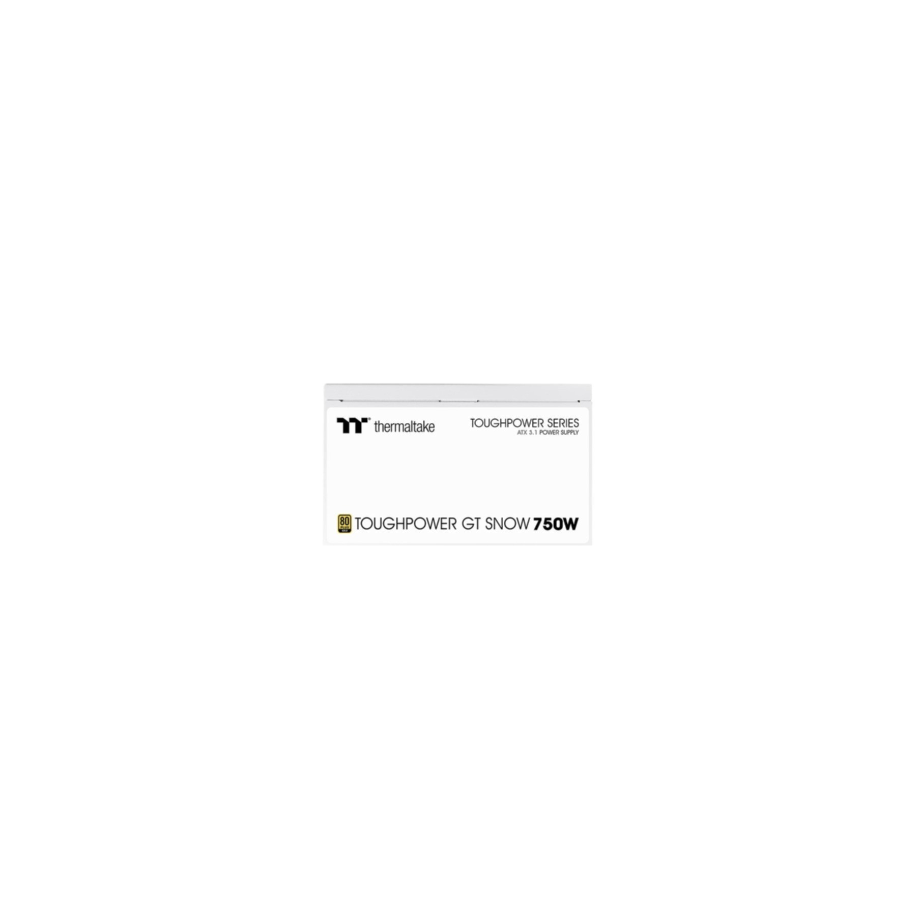 750W Thermaltake Toughpower GT Snow PSU, 80 PLUS Gold, ATX 3.1 ready, native PCIe 12V-2x6 (12+4) connector, fully modular, 5-year warranty.